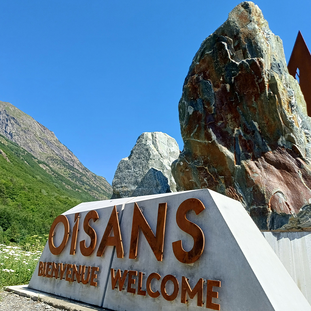 Plus qu’une signalétique, la mission confiée à TELOA voyait dans le même temps la réflexion pour marquer les 4 entrées de territoire dans un objectif de participer à la notoriété de celui-ci ! Un signal implanté aux 4 axes d’entrée en Oisans donc, Vallée du Ferrand, Vallée de l’Eau d’Olle, Vallée de la Lignarre et Vallée de la Romanche.