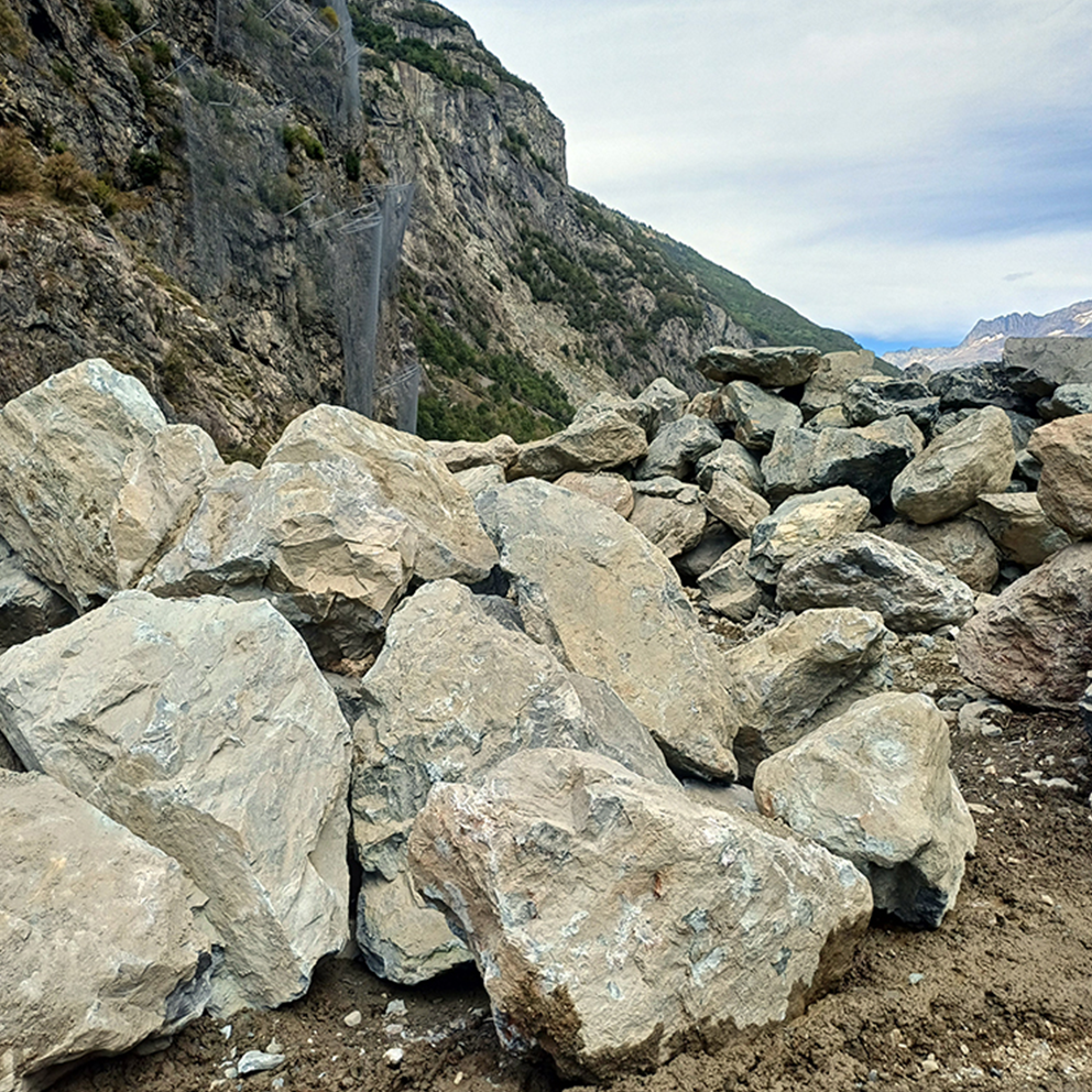 Verticalité, référence à l’identité de l’Oisans avec le béton facetté pour clin d’œil aux ouvrages hydroélectriques majeurs tels que les barrages de Grand’Maison ou du Chambon, le métal patiné évoquant le caractère patrimonial industriel notamment en Vallée de la Romanche, et la roche, prélevée localement, reflet parfait de la géologie incroyable omniprésente sur le territoire.